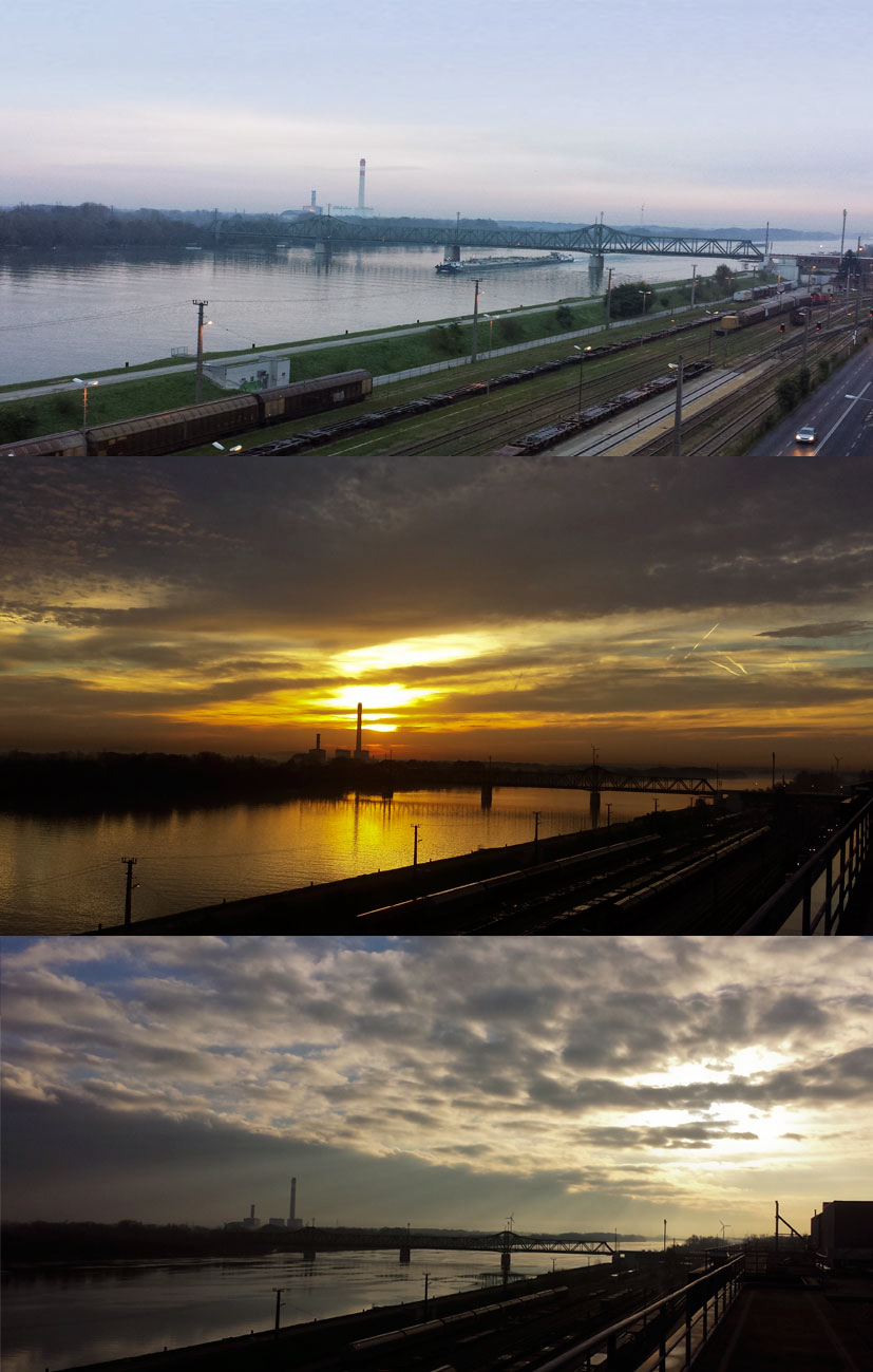 Pod mostami płynie Dunaj, który nie zawsze jest modry. Odbijające się w nim jak w lustrze poranne niebo sprawia, że w takich chwilach nie ma to znaczenia 🙂