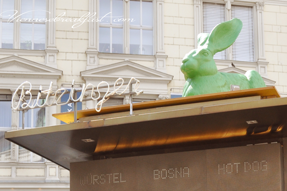Lubię obserwować z góry kolejki pod najbardziej znaną budką z wiedeńskim fast foodem, która rozlokowała się u jej podnóża. Serwują tam między innymi sławne Würstel. Jeżeli jesteście mięsożercami to spróbujcie koniecznie, by wiedzieć co było do niedawna tak charakterystyczną szybką przegrychą na mieście dla Wiedeńczyków.