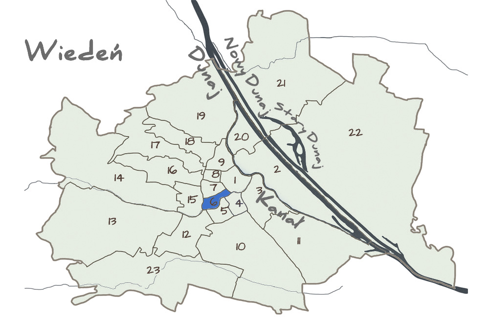 Można tam dobrze zjeść, próbując kuchni z różnych stron świata. Skoro mowa o jedzeniu to w 6 dzielnicy jest wiele kawiarni i knajpek. W bardzo wiedeńskim klimacie są dwie — to moja subiektywna ocena, jak wszystkie polecajki na blogu — Café Sperl i Café Savoy. Pierwsza skromniejsza, bardziej moja przy Gumpendorferstrasse 11. Druga bardziej dystyngowana, bogatsza w wystroju, ale nadal moja przy Linke Wienzeile 36.