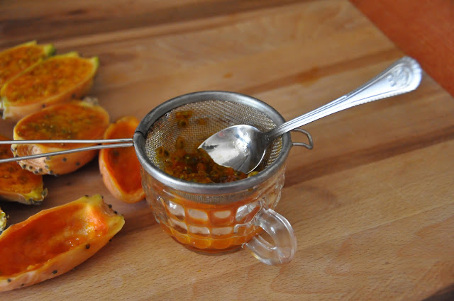 Pestki zostają na sitku, a w kubeczku pyszny przetarty kaktus.
