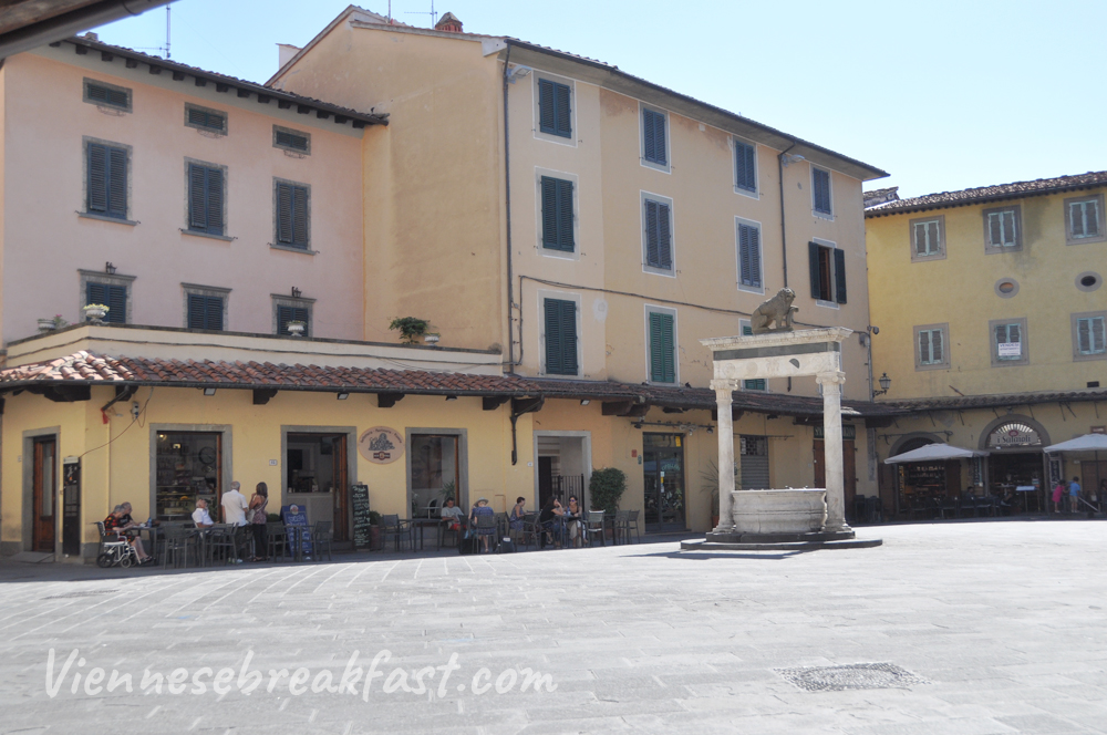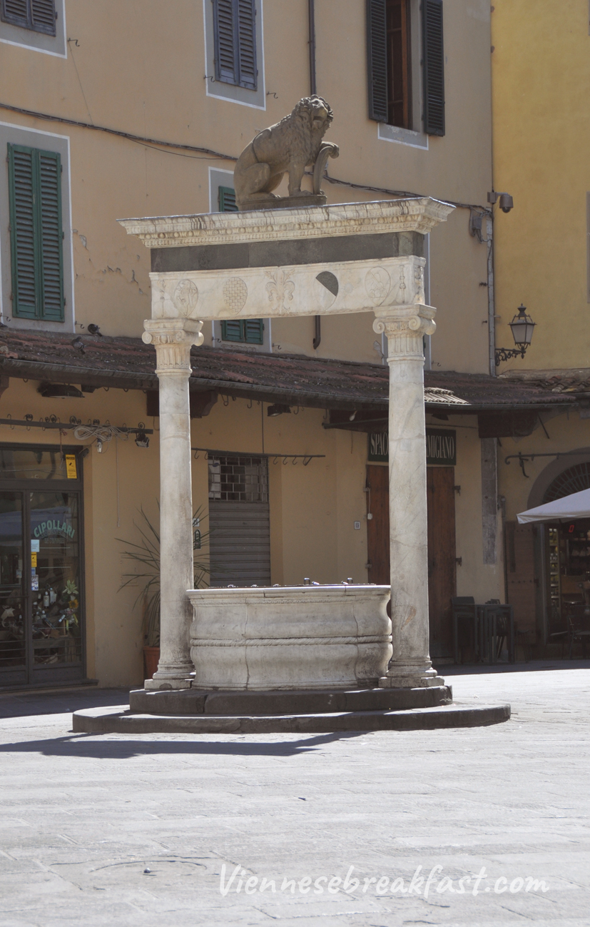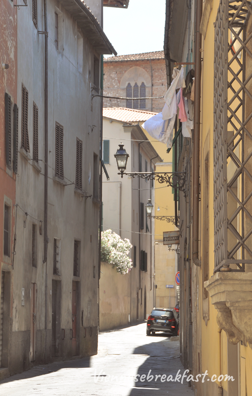 Kolejnym placem, który w Pistoi chwycił mnie za serducho był mały ryneczek z XV wieku, otoczony restauracyjkami – Piazza della Sala. Tu też znaleźliśmy maleńkie delikatesy z lokalnymi wypiekami, serami, pastami i wszystkim co dobre w Toskanii. Mają tam pyszną pastę z karczochów. Mniam!