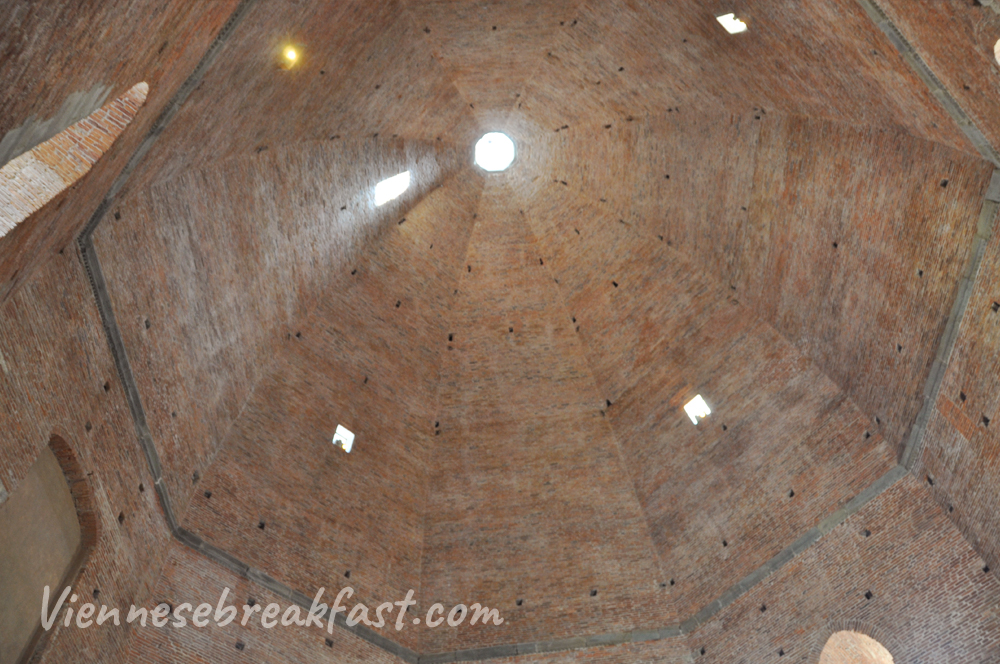 Wysokie, okrągłe ceglane sklepienie było jednak warte wejścia do tej sauny.
