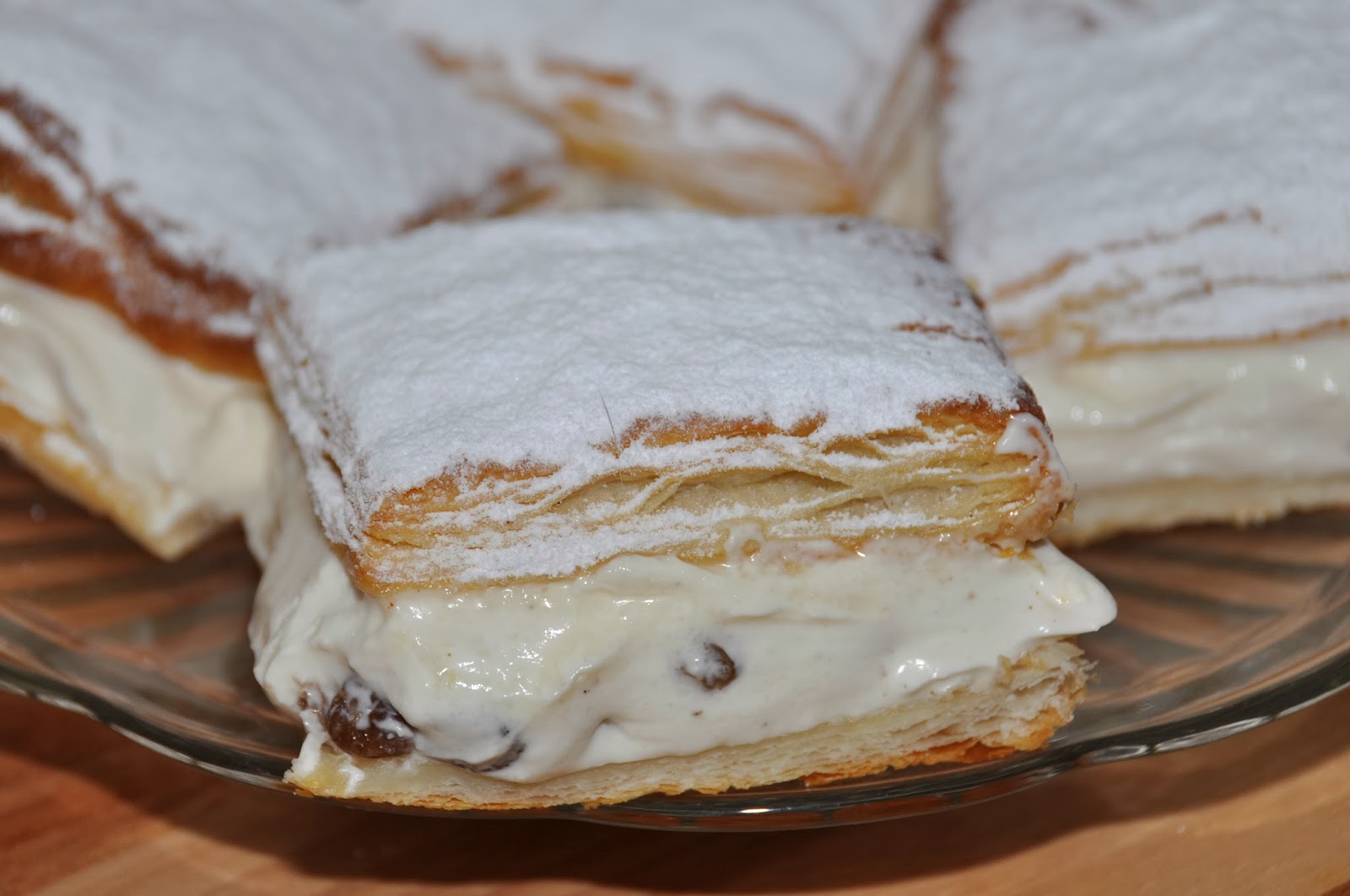Teraz wystarczy już wyłożyć masę na ciasto gdy wystygnie, przykryć mniejszymi kawałkami upieczonego ciasta i posypać obficie cukrem pudrem.