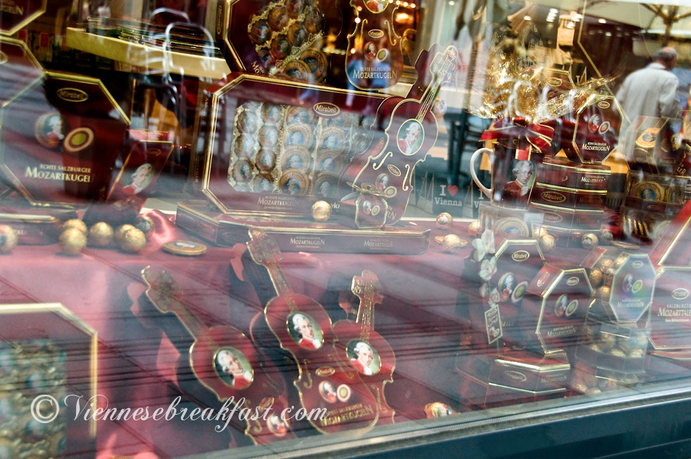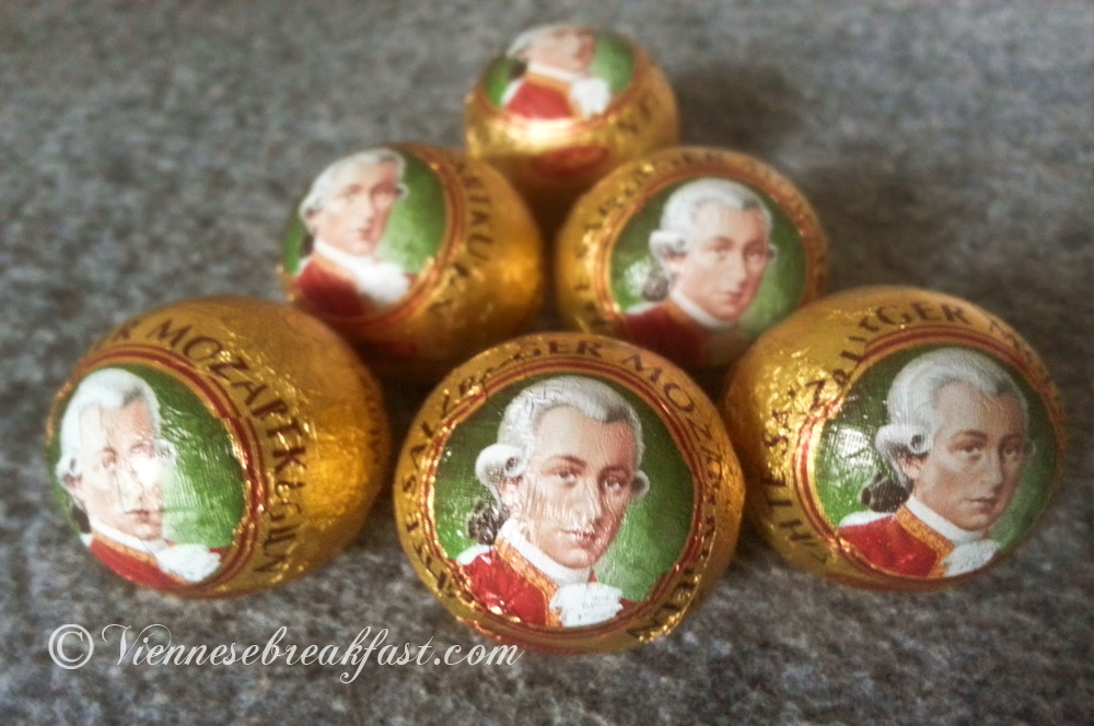 Są sklepiki z czekoladkami mozartowym wizerunkiem ozdobione.